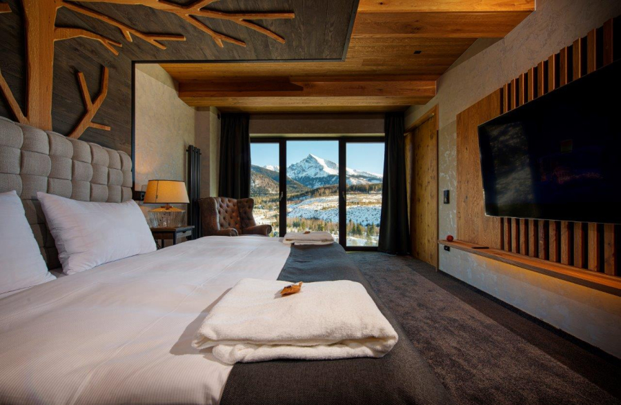 Suite President je luxusný apartmán, ktorý ponúka maximálny komfort a nekonečné pohodlie. Svetlý a priestranný interiér je zjemnený masívnymi drevenými prvkami, nadčasovým nábytkom a jedinečnými dekoráciami. Vďaka francúzskym oknám si môžu hostia vychutnať nádherný výhľad na Tatry a to dokonca aj priamo z postele alebo z priestranného balkóna. Apartmán je vhodný pre páry, ktoré si radi doprajú dokonalý luxus.